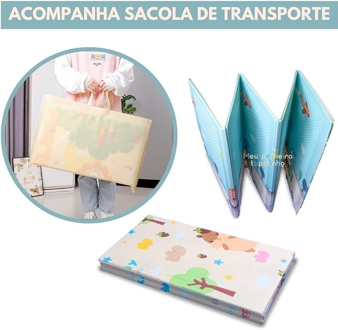 Esse tapete de atividades é o tipo de item que acompanha o crescimento do bebê e vira parte da rotina da família. Super acolchoado e térmico, ele isola o frio do chão, proporcionando um espaço seguro, confortável e limpo para o bebê brincar, engatinhar ou fazer tummy-time (tempo de bruços).