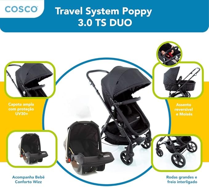 Carrinho de Bebê Travel System Poppy com Bebê Conforto – Cosco